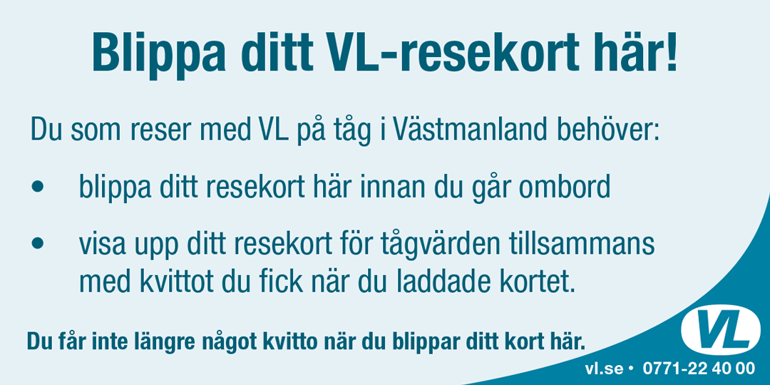 Under sommaren kommer vi att ta bort kvittoutskriften i VL:s biljettläsare på tågperrongerna i Västmanland. Du som reser med en VL-biljett som är giltig på tåg kommer inte längre att få något kvitto när du blippar din biljett.
